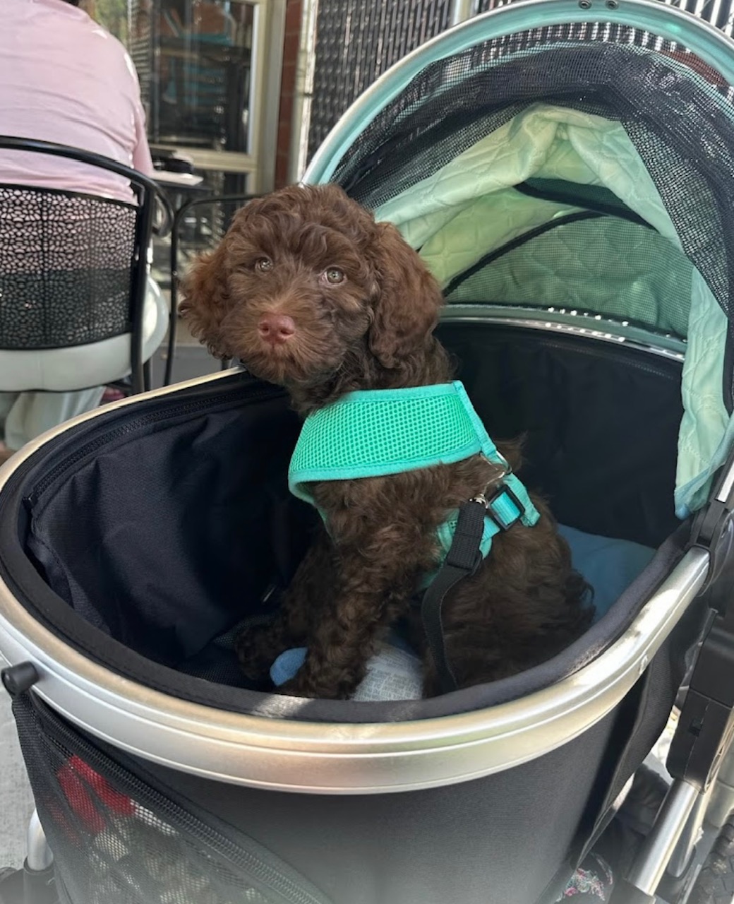“We are first time dog owners and Melissa has made the experience extra smooth. She helped us prepare for Bruno’s arrival, answered any questions with attention to detail and is genuinely interested in how our little Bruno is doing. From day one Bruno has been a fun, spunky, intelligent and family friendly puppy. I definitely recommend Pack River Poodles and Doodles!” Emma
